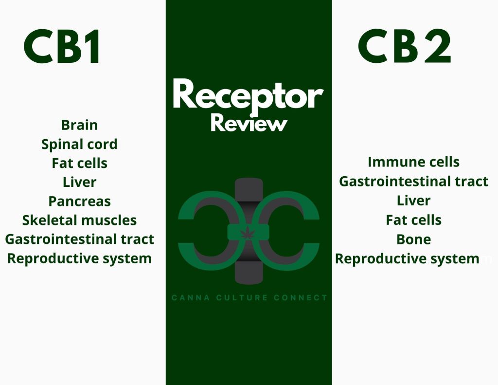For every cannabinoid, there’s one of two receptors, whose purpose is to signal when the ECS needs to step in and regulate. They for sure “yerrrr” one another. The CB1 receptors are mainly found in the central nervous system and the CB2 in the peripheral nervous system- primarily immune cells.